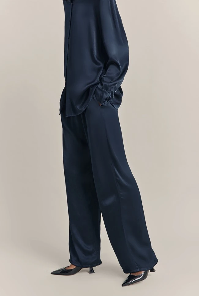 For flattering trousers that ooze comfort, look no further than Imogen. Made from our fluid garment-dyed Eco Vero satin, these wide leg Palazzo-style trousers offers a looser fit and are perfect for colder days when you want a little extra coverage. With an adjustable drawstring waist and handy side pockets these trousers are made for functional comfort. Tuck in a plain white tee or match with our Ellie shirt or Jana cami.