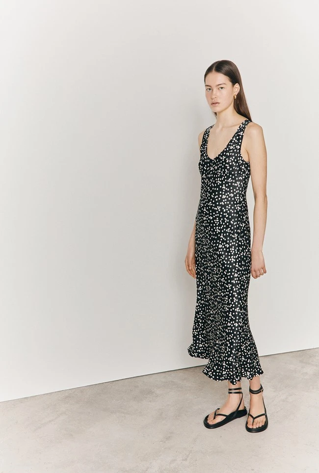 Palm dress is a true wear-anywhere classic. A classic bias-cut slip dress in sustainable EcoVero satin with thick straps that can conceal bra straps, it’s both practical and sophisticated in equal measure. Wear with heels and a statement clutch for a chic and simple look at dressier events or layer over a T-shirt and pair with flats for off-duty days.