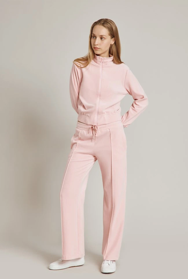 The perfect partner to our velour track top, our velour trousers are the ultimate addition to your loungewear wardrobe. An elasticated waist with a grosgrain drawstring assures maximum comfort, while the loose, wide-cut legs make for a flattering fit. Pair with trainers for a luxe off-duty look.